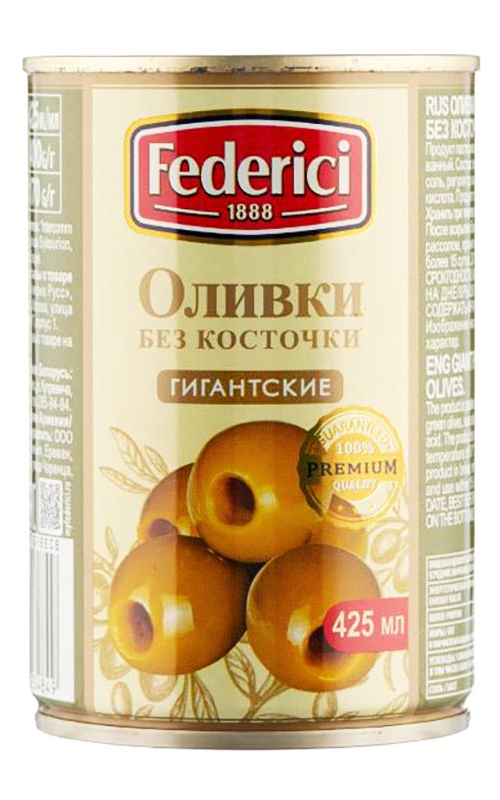 Green olives pitted "Federici Giant" 425g