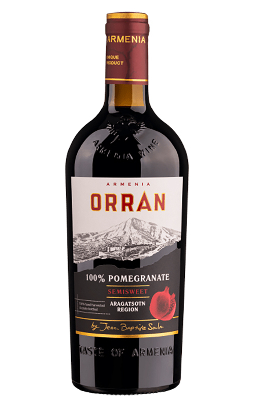 Red wine “Orran” 0.75 L is a semi-sweet red wine based on pomegranate, featuring a juicy and fruity flavor. It offers notes of pomegranate and red berries, with mild acidity and a pleasant sweetness that is not overpowering. This wine pairs well with both light meals and festive occasions. Alcohol content: 12%.