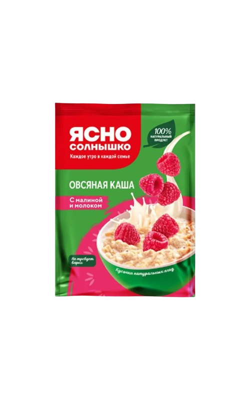 Oatmeal “Yasno Solnyshko” raspberry with milk, 45 g