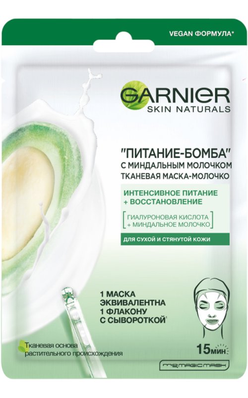 Face cloth mask "Garnier" nutritious bomba, almond milk 1pc