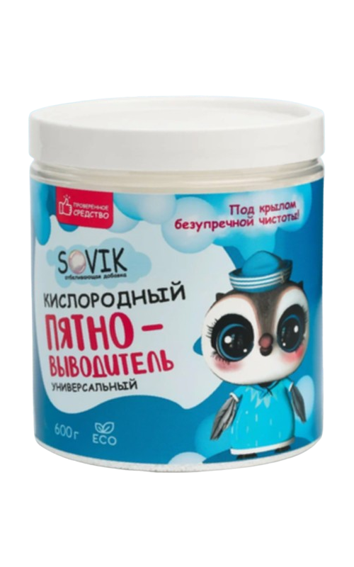 The universal oxygen cleaner from the SOVIK brand is an effective means for removing dirt on various surfaces. The composition, including sodium carbonate and peroxyhydrate as a bleaching activator, provides deep and safe cleaning.