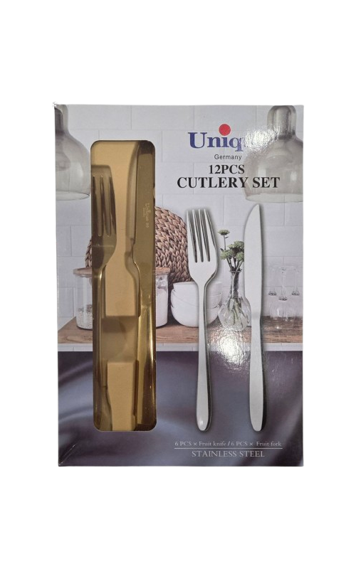 Dessert knife and fork set, gold, 6+6 pcs, AV-11881