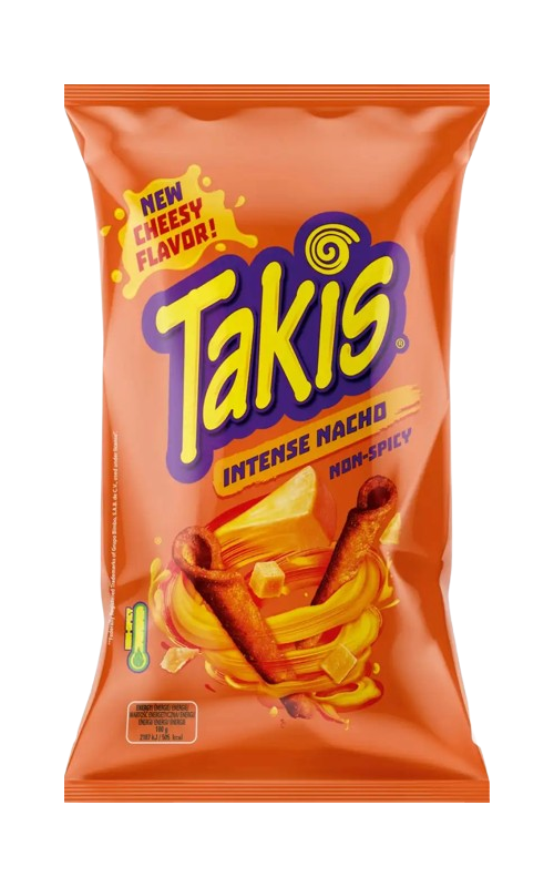 “Takis Intense Nacho” 100 g – a tasty cheesy snack without spiciness. Each pack contains rolled tortilla chips generously coated with rich nacho cheese flavor. Perfect for those who prefer a milder taste and ideal for any occasion, whether on the go or sharing with friends.