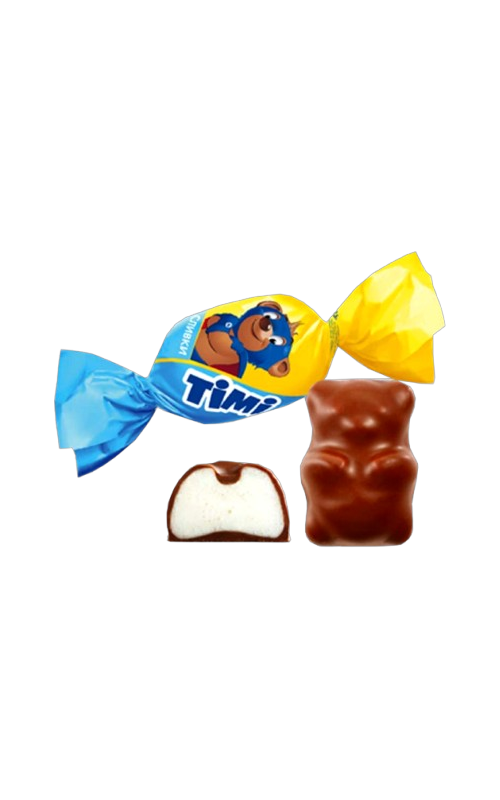 Glazed candies in the shape of a teddy bear with delicate souffle with cream flavor.