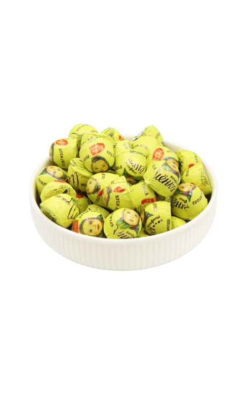 Chocolate glazed candies with a milky fondant filling. Store at a temperature of +15°C to +21°C and a relative humidity of no more than 75%. Ingredients Sugar, glaze (sugar, cocoa mass, vegetable oils (palm, shea), cocoa powder, cocoa mass, cocoa butter, sweetened condensed milk (whole milk, sugar), water, butter, cocoa powder, milk substitute fat. Kilocalories 100 g / 397 g Protein 100 g /3 g Fats 100 g /10 g Carbohydrates 100 g /75 g