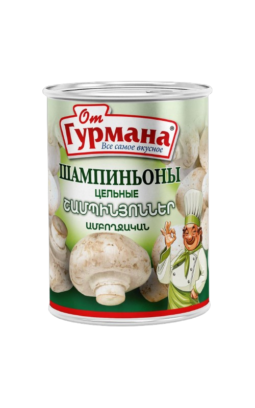 Canned whole champignons. Champignons not only have a unique taste, but also have positive effect on human organism. These mushrooms are rich in phosphorus, sodium, potassium, vitamins B, C, D and H. These mushrooms also contain folic acid, which fruits and vegetables do not contain. Champignons can easily replace such a source of protein as meat.