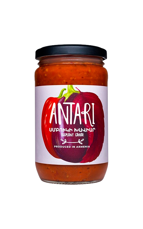 Fresh eggplant, tomato paste, fresh red bell pepper, sunflower oil, fresh onion, fresh carrot, salt, sugar, fresh parsley, ground red chili pepper.