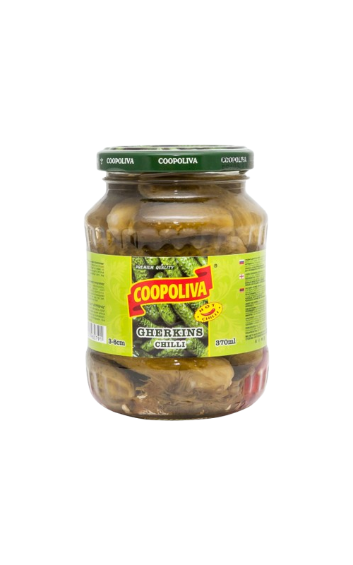 Ingredients Gherkins (3-6sm), water, spanish vinegar, hot red pepper, garlic and original spices.