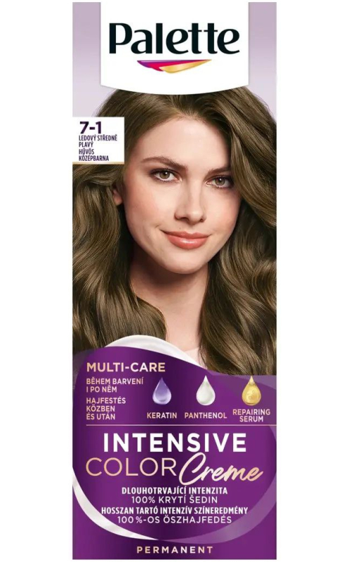 Hair dye, with bees milk, color: frosty medium blonde. You can find cream hair dye, milk revealing reagent, a pair of gloves and instruction booklet in the package.