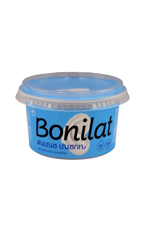 Strained yogurt, fat content 6%. Store at a temperature of 2-6°C and a relative humidity of no more than 85%. Ingredients Creamy milk, normalized, bacterial coagulum. Kilocalorie 100 g / 105 g Protein 100 g / 10 g Fat 100 g / 6 g Carbohydrates 100 g / 2.8 g