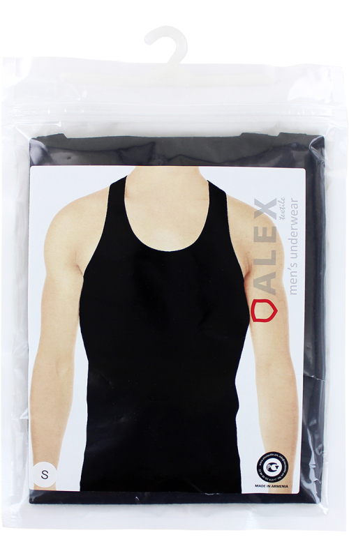 Men's underwear - black sleeveless undershirt: size S, 100% cotton.