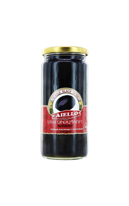 Sterilized black olives, pitted. Store at a temperature of 0°C to 20°C and a relative humidity of no more than 75%. Ingredients Olives, water, salt, iron gluconate. Kilocalories 100 g / 190 g Protein 100 g / 1.5 g Fats 100 g / 18 g Carbohydrates 100 g / 5 g