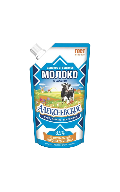 Condensed milk with sugar, richness: 8.5%. Condensed milk is concentrated cow's milk, most often with sugar added. Sweetened condensed milk, when canned can last for years without refrigeration, if unopened.