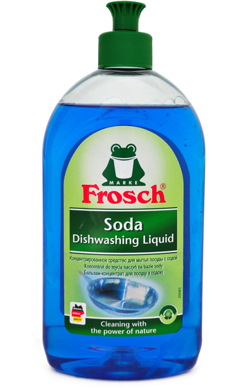 Frosch dishwashing liquid, soda, 500 ml. Eco. Can be used for any type of surface. Removes grease and dirt. Polishes the surface. Does not irritate the skin. Does not cause allergies. Does not contain microplastics. Dermatologically approved. Product type: liquid. Odorless.