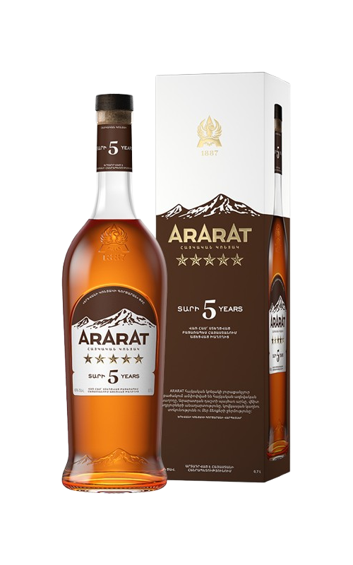 Կոնյակ` 5 տարվա հնեցման, ալկ. 40%: Ararat հայկական կոնյակի յուրաքանչյուր բաժակում ամփոփված են հայկական ազնվական խաղողը, Արարատյան դաշտի պայծառ արևը, վճիտ աղբյուրների անաղարտությունը, կովկասյան կաղնու տոկունությունն ու մեր ձեռքերի ջերմությունը:
