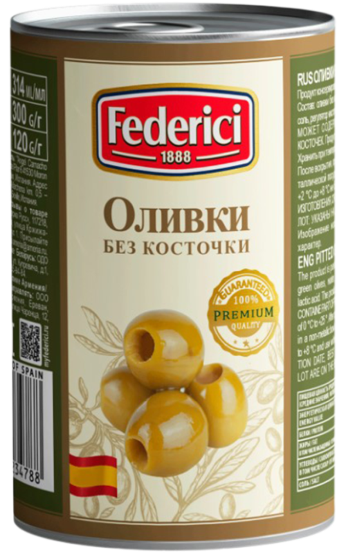 Ձիթապտուղ կանաչ «Ֆեդերիչի» առանց կորիզ 300գր