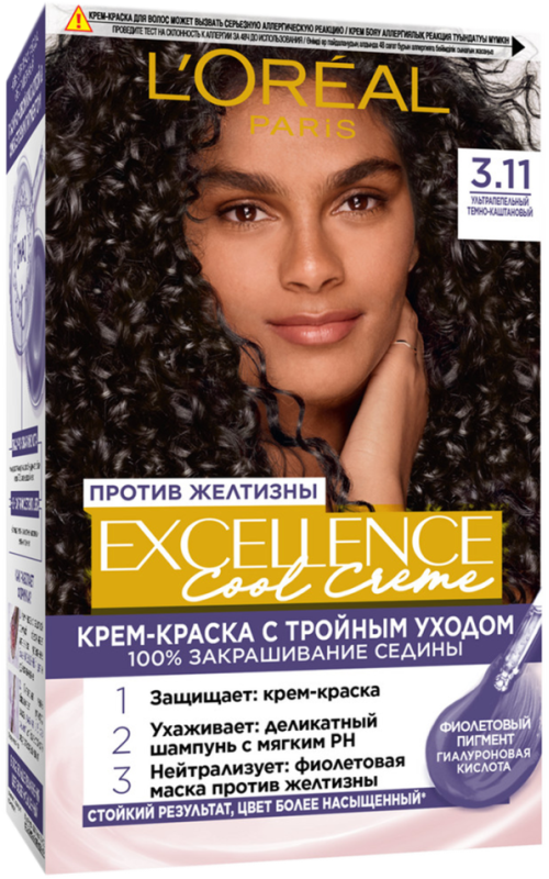 Մազի ներկ «L'Oreal» Excellence 3.11 մոխրա-շագանակագույն