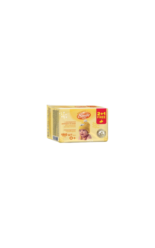Անձեռոցիկ խոնավ մանկական Smile baby դեղին 3*60հատ 2+1