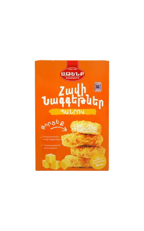 «Աթենք» ապրանքանիշի պանրով հավի նագեթները՝ 240 գրամանոց փաթեթավորմամբ, համեղ և հյութալի կիսաֆաբրիկատ են, որը պատրաստված է բարձրորակ հավի մսից և հալվող պանրի համադրությամբ։ Նրանք ունեն խրթխրթան արտաքին և նուրբ միջուկ, ինչը դարձնում է նրանց իդեալական արագ նախաճաշի կամ ընթրիքի համար։ Պատրաստման համար անհրաժեշտ է միայն տաքացնել թավայի մեջ կամ ջեռոցում՝ ստանալով հիանալի համ և բույր։