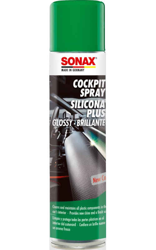 Պլաստիկ մաքրող սփրեյ նոր մեքենայի բույրով: Նյութը պլաստիկին հաղորդում է թարմություն, փայլուն տեսք և անուշ վանիլի բուրմունք: Խնամում է ինչպես պլաստիկը, այնպես փայտյա լաքապատ դետալները, հաղորդում է անտիստատիկ էֆեկտ և պաշտպանում է ճաքճքելուց: Չի պարունակում սիլիկոն: