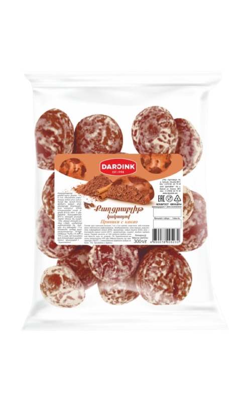 «Դարոինկ» կակաոյով քաղցրաբլիթներ 300 գ — համեղ և փափուկ արտադրանք՝ հարուստ կակաոյի համով, որը կատարյալ է թեյի հետ համատեղելու համար։ Դրանք պատրաստված են ավանդական բաղադրատոմսով՝ բնական բաղադրիչներով, ինչը նրանց հաղորդում է յուրահատուկ նրբություն և օդային համ։ 300 գ փաթեթավորումն հարմար է պահեստավորման համար և իդեալական է ընտանեկան հավաքների կամ նվերների համար։