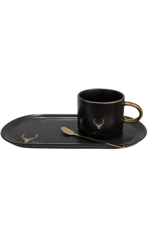 Թեյի բաժակ օվալաձև ափսեով և մետաղյա գդալով (մեկական), մոդել AV-11634