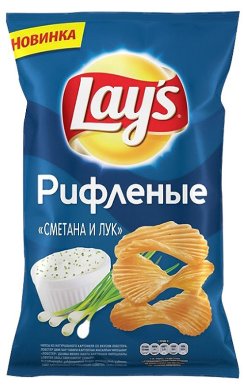 Կարտոֆիլի չիպսեր՝ թթվասերի և սոխի համով, ալիքաձև: