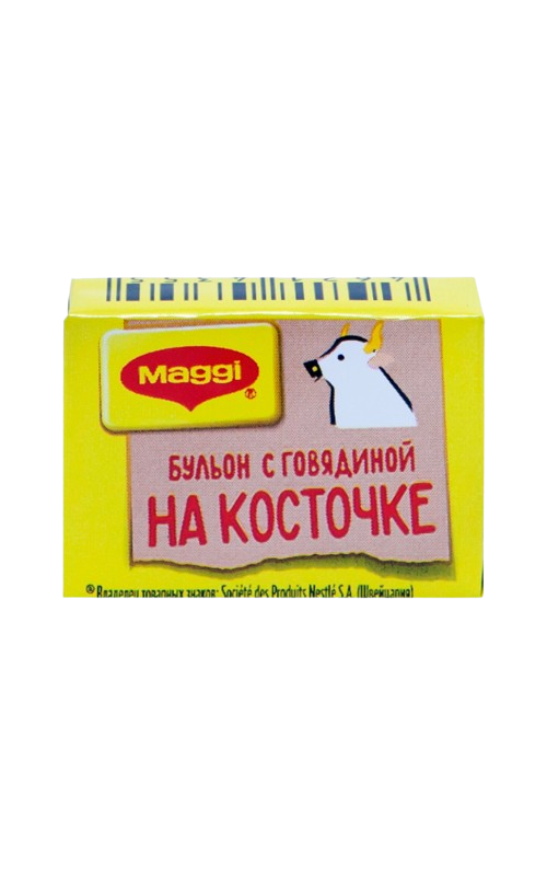 Տավարի արգանակը պարունակում է միայն ծանոթ բաղադրիչներ` բնական բանջարեղեն, խոտաբույսեր և ոչ մի արմավենու յուղ: Ավելացրեք 1 խորանարդ 0.5 լիտր եռացող ջրի մեջ 3 րոպե առաջ՝ մինչև ճաշատեսակի պատրաստ լինելը: Պահել +25°C-ից ոչ բարձր ջերմաստիճանում և հարաբերական խոնավությունը ոչ ավել, քան 75%: Բաղադրությունը Աղ, շաքար, եգիպտացորենի օսլա, չոր գլյուկոզայի օշարակ, մսային բաղադրիչներ, եգիպտացորենի սոուս, բուրավետիչ, ջուր, կարամելացված փոշու շ աքար, չորացրած բանջարեղեն և խոտաբույսեր, թթվայնության կարգավորիչ, աղացած համեմունքներ: Կիլոկալորիա 100 գր / 186 g Սպիտակուցը 100 գր /0,8 g Ճարպեր 100 գր /9,9 g Ածխաջրեր 100 գ /22,7 g