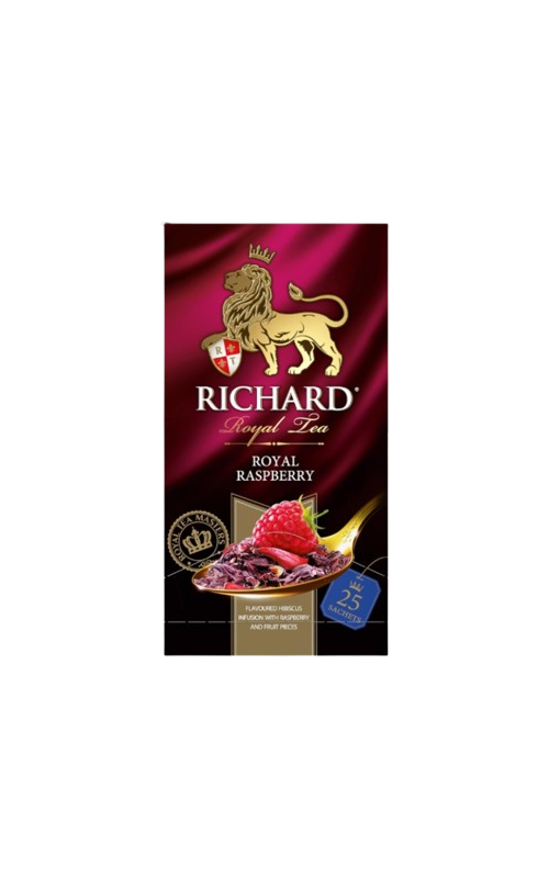 Մրգային թեյ ազնվամորու համով։ Պահել չոր վայրում։ Բաղադրությունը Հիբիսկուս, վայիր ծաղիկների սերմեր, ազնվամորու խառնուրդ, խնձորի կտորներ։
