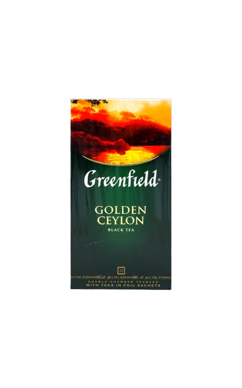 Սև թեյ փաթեթներով: Ցեյլոնի թեյի վառ բույրը և ազնվական համը գերել են ամբողջ աշխարհը: Պլանտացիոն Greenfield Golden Ceylon թեյի անկրկնելի համը պայմանավորված է նրա համի նուրբ երանգների և ամբողջության ներդաշնակ համադրությամբ, որը իրական հաճույք կպատճառի թեյը գնահատողներին
