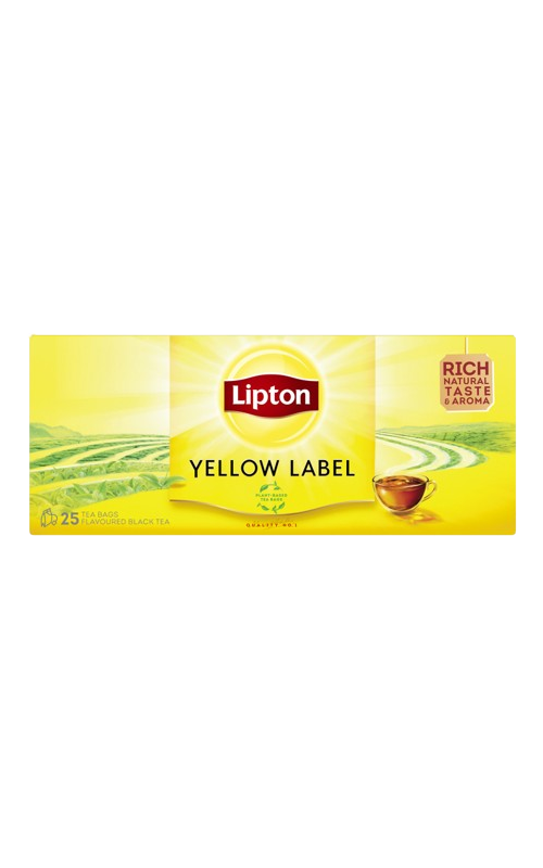 Սև թեյ, փաթեթներով: Lipton Yellow Label թեյի թարմեցնող համը ուրախության զգացում է արթնացնում՝ ժպիտ պարգևելով ամեն նոր օրվան: Այս բնական թեյը իր մեջ պահպանում է ձեռքով հավաքած ընտրված թեյի տերևների բնական կատարելությունը: Այս թեյը, շնորհիվ իր անկրկնելի թարմեցնող համի,իրենից ներկայացնում է ամբողջ աշխարհով մեկ ընդունված որակի ստանդարտ