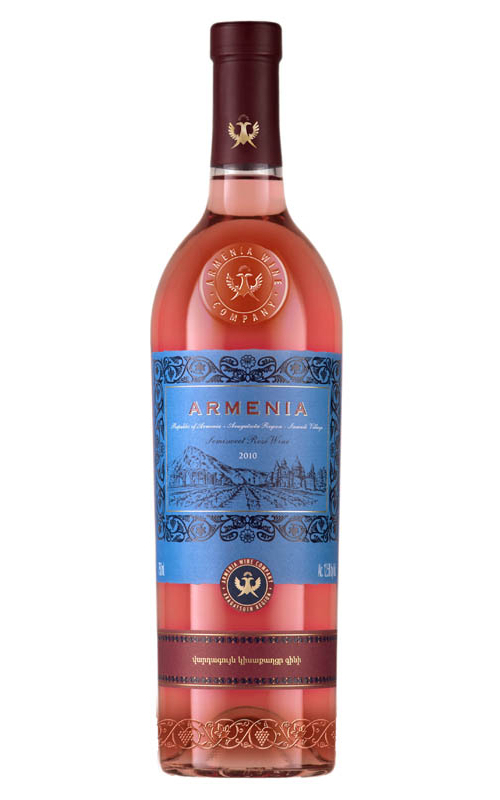 Գինի վարդագույն կիսաքաղցր 12% «ԱՐՄԵՆԻԱ» վարդագույն կիսաքաղցր գինին Արենի և Կախեթ տեղական խաղողի սորտերի միասնություն է: Գինին ունի յուրահատուկ փափկություն և հարուստ բույր: Բաց վարդագույն երանգով այս գինու մեջ ներդաշնակորեն համատեղվում են մրգային հարուստ և վառ արտահայտված համերը: Այս գինին թարմություն հաղորդող, դյուրըմպելի գինի է՝ չորացրած մրգերին հատուկ փնջով և հաճելի տտիպությամբ: Վայելեք որպես ապերիտիվ, ինչպես նաև տապակած ուտեստների, աղցանների և բանջարեղենի հետ: