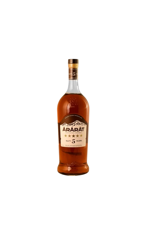 Пятилетний коньяк производится в Республике Армения из коньячных спиртов средней выдержки не менее 5 лет. Этот коньяк, пожалуй, самый популярный. Он обладает сочными тонами сливы, сладкого армянского персика и тонким вкусом с нотками черной смородины. Хранить в проветриваемом помещении, вдали от прямых солнечных лучей, при температуре не ниже +5°C. Состав: Коньячный спирт, сахар, вода. Энергетическая ценность: 100 г / 224 г