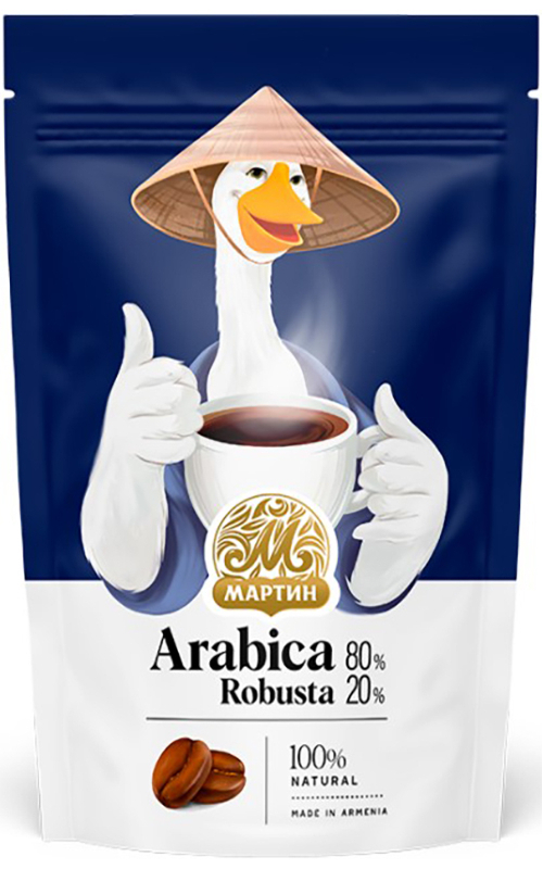 100% натуральный молотый кофе - специально отобранный букет лучших сортов кофе. 80% Робуста, 20% Арабика.