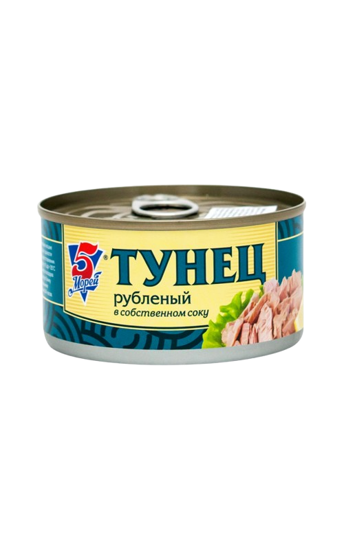Тунец «5 Морей» в собственном соку, кусочками, 185 г