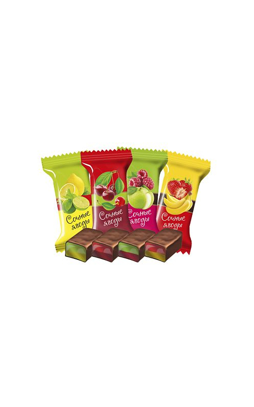 сахар, патока, кондитерская глазурь (сахарная пудра, заменитель масла какао (рафинированное дезодорированное растительное масло), какао-порошок, эмульгатор-лецитин соевый, ароматизатор Ванильный), загуститель пектин, регулятор кислотности кислота лимонная, ароматизаторы: Вишня, Черешня, Банан, Клубника, Лимон-лайм, Зеленое яблоко, Малина, красители: кармин, куркумин, зеленый S