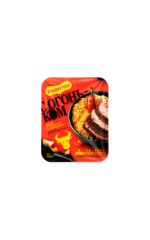 Лапша Роллтон с говядиной по-домашнему Огненно-острый чили в тарелке 100 г.