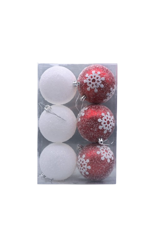 Ёлочная игрушка "Шар" красно-белый, с хлопьями 8см 12шт