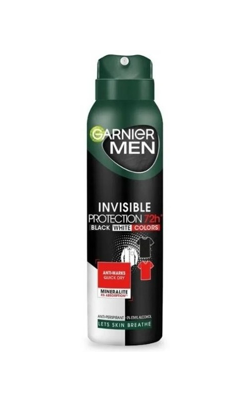 Дезодорант Garnier Mineral, мужской, черный, белый, 72 ч, 150 мл
