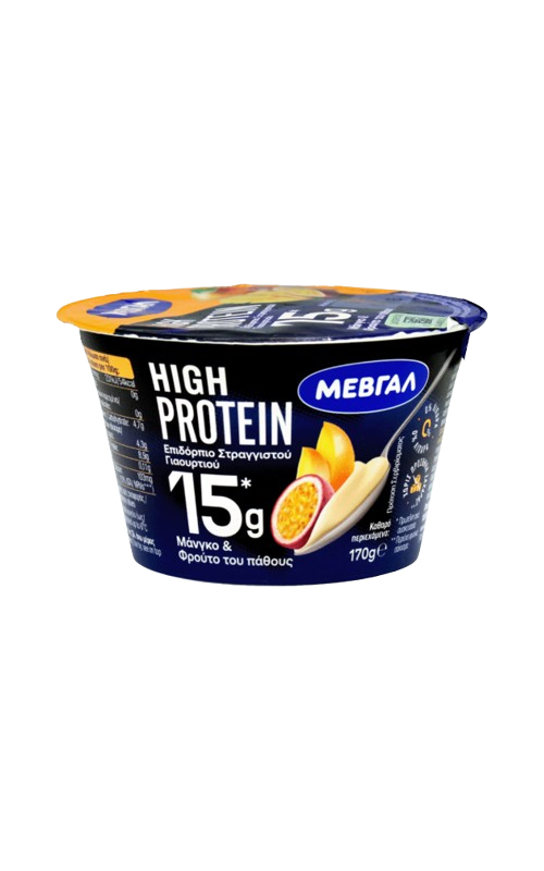 Йогурт с высоким содержанием белка, со вкусом манго и маракуйи, содержание жира: 0%.
