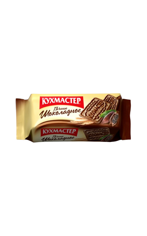 Шоколадное печенье: Хранить при температуре 18±5 °C и относительной влажности 75%. Ингредиенты: Высококачественная пшеничная мука, маргарин, эмульгаторы, соль, лимонная кислота, ароматизатор, красители, кукурузный крахмал, сахар, вода. Калорийность: 100 г / 448 г Белки: 100 г / 8,3 г Жиры: 100 г / 17,3 г Углеводы: 100 г / 66 г