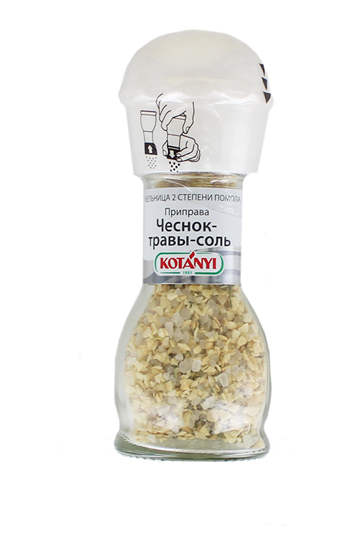 Приправа: чеснок, травы и соль (мельница).